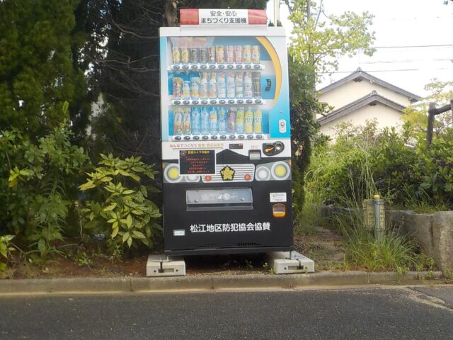 パトカーのデザインを取り入れた自動販売機。水分補給も忘れずに