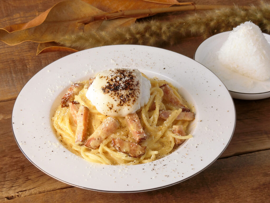 地産地消をコンセプトに「プレミアムハンバーグ」や、とろけるような「カルボナーラ」、スパイシーな「華蔵寺カレー」など、こだわりのメニューがずらり。
