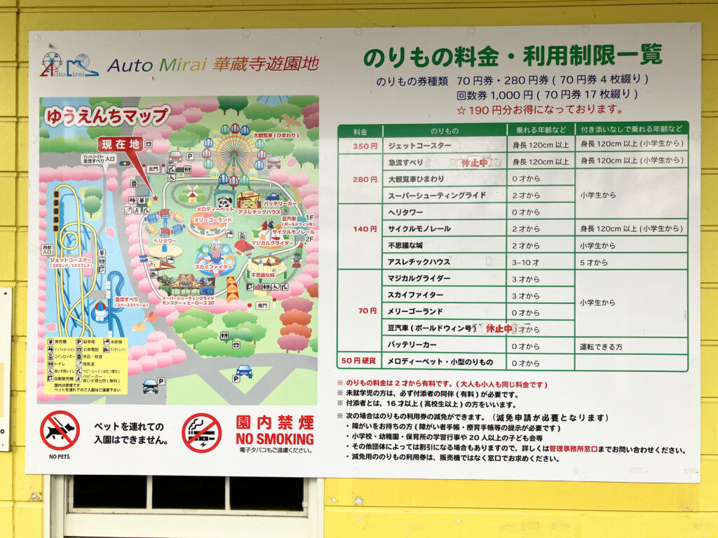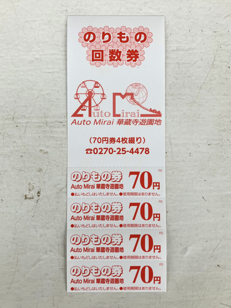 遊園地はチケット式です。券売機に現金を入れて70円チケットを購入します。なんだか、古き良き雰囲気を感じますね〜。いまでは何でもピッとスマホをかざして決済ですが、子どもたちがお金の計算をする勉強にもなりそうです!