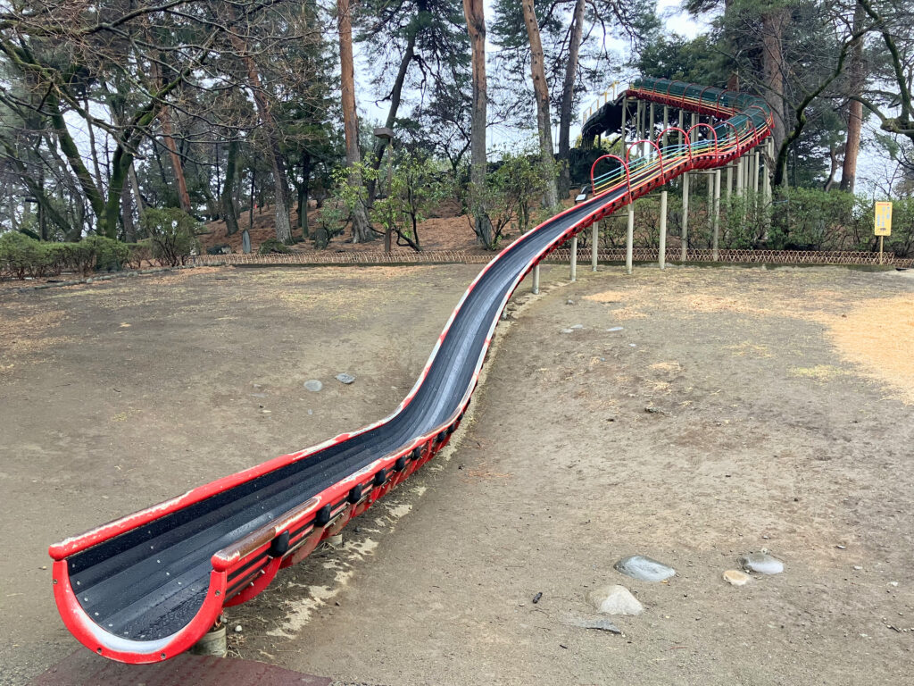 そして小高い丘の上にはなが〜い滑り台がありました。あいにく雨で挑戦できませんでしたが、これはかなり楽しそうです!