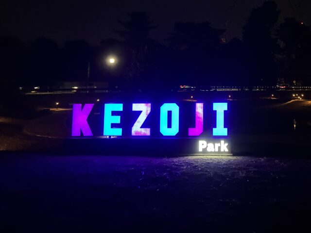 2. 夜の公園が熱い!SNS映えの「KEZOJI」モニュメント