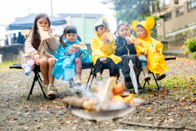 道路使用許可を得て、公園や公園内にある道路空間までを会場に、小雨のなかでの焚き火を敢行しました。揺れる炎を囲みながら、キッチンカーのフードやコーヒーを片手にくつろぐ姿が見られ、飲食店が少ないエリアにおいて「キッチンカーが来るだけで外出が増える」という切実な声もありました。