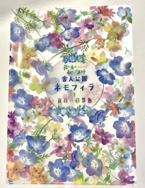 イベント開催中、アンケートにお答えいただいた方全員に、オリジナルデザインのクリアファイルがもらえます。引き換え時間は15:00〜消灯時間、運営テントにて引換可能です。ネモフィラや春の花々が描かれたクリアファイルをぜひゲットしましょう!