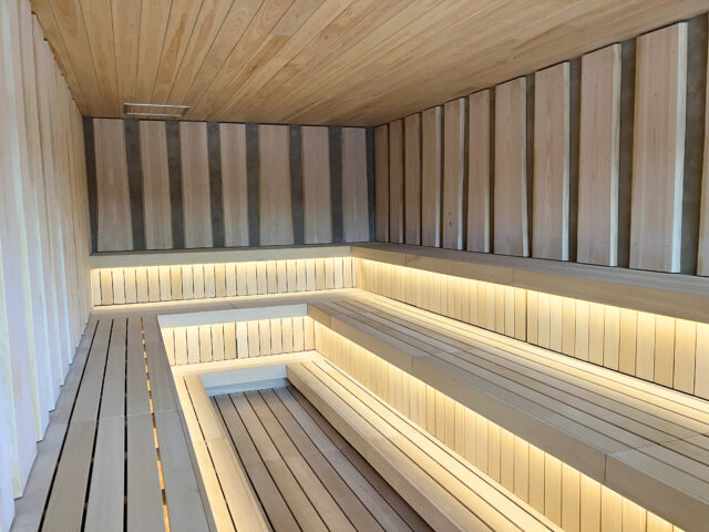 - こだわり抜いたフィンランド式:10分に1回のオートロウリュを完備。 独自の給排気システムで、熱いのに息苦しくない、常にフレッシュな空気が循環する環境を実現しています。